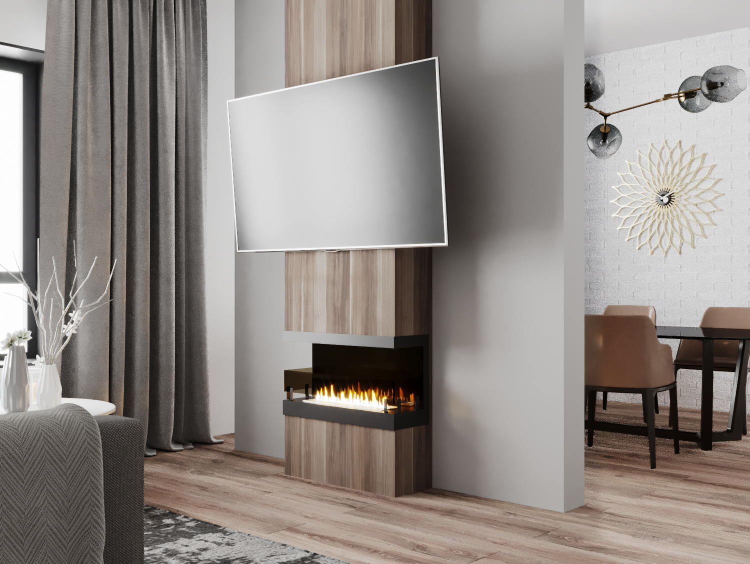 Встраиваемые варианты разделяются на такие как классические, устанавливаемые в подготовленное отверстие в стене или нише. Угловые, которые монтируются в угловую часть стены. Торцевые – открытые с трёх сторон. И сквозные, вид живого огня которых доступен в разных комнатах.