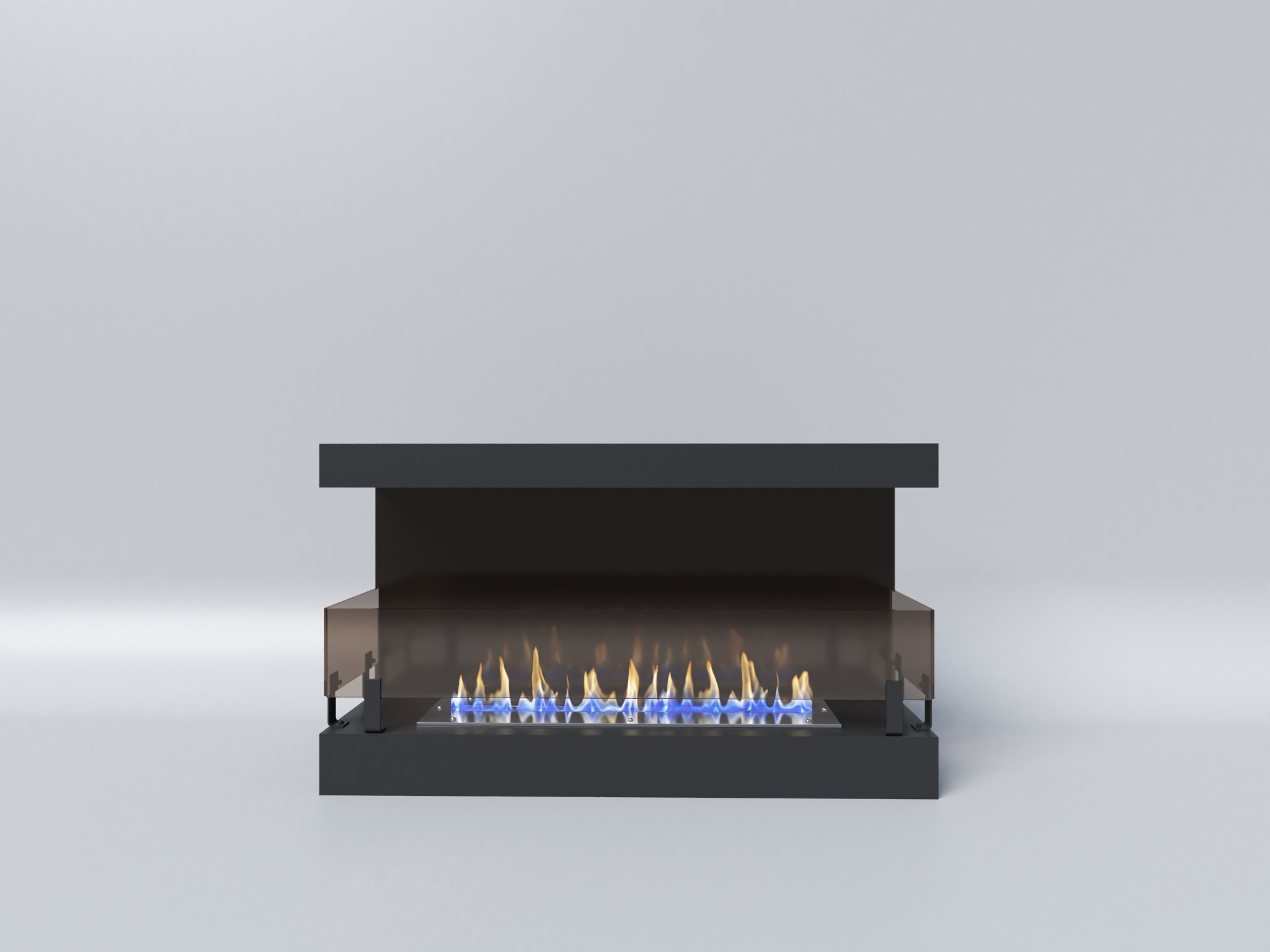 - Защитное стекло убережёт от открытого огня, послужит барьером от попадания различных предметов внутрь камина. Оно устанавливается на фронтальной части камина в специальные пазы, заложенные в конструкции.