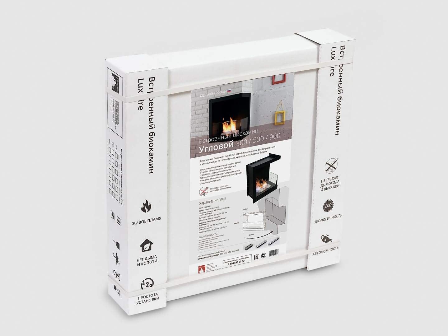 Встроенный биокамин Lux Fire Угловой 490 S (левый угол)