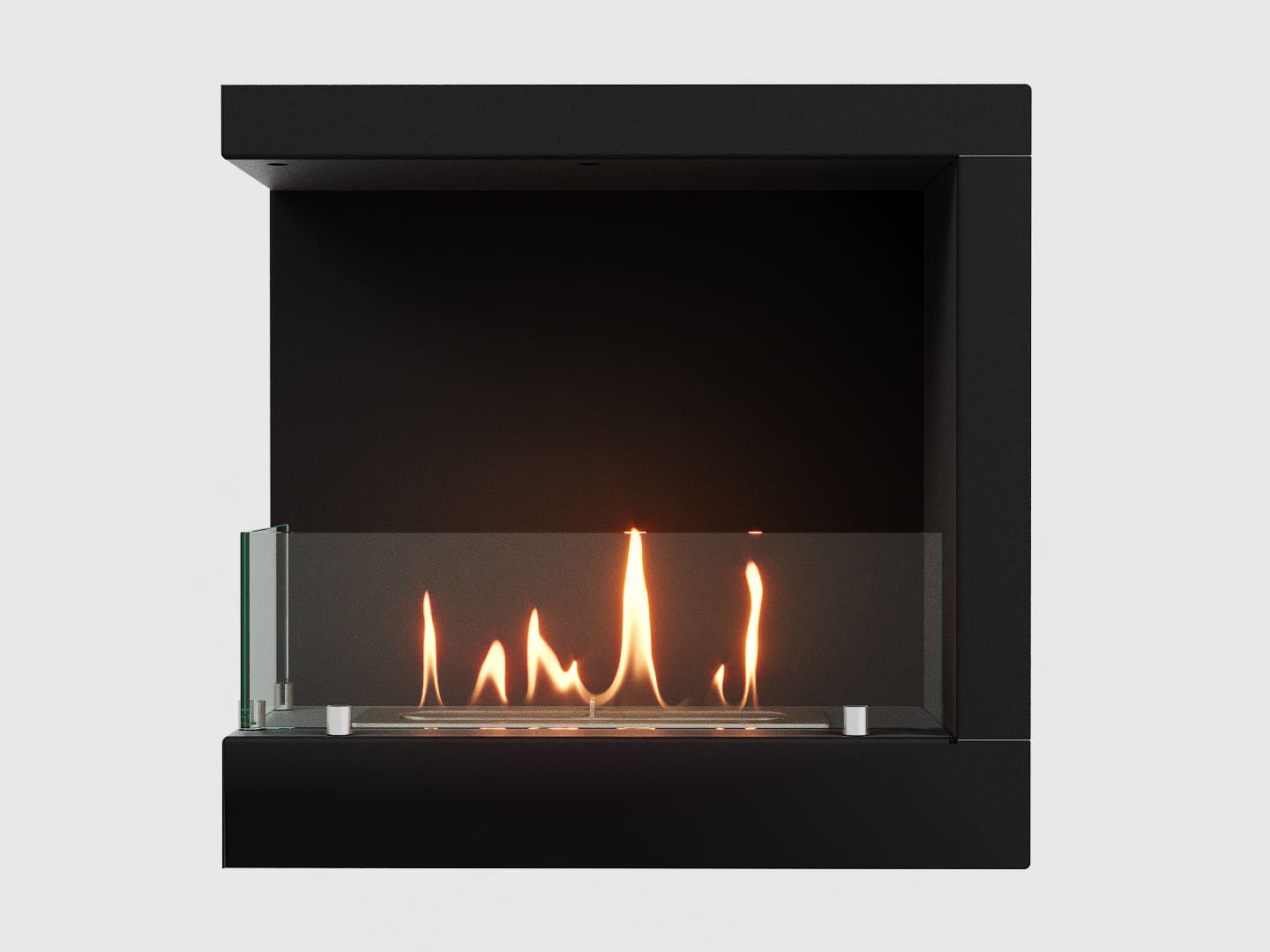 Очаг – это емкость куда заливается жидкое топливо. Емкость внутри заполняется керамическим материалом, который впитывает биотопливо, и в случае опрокидывания камина топливо не разливается. За счет этого конструкция стала полностью пожаробезопасной. Очаг встраивается в корпус из стали, который окрашивается специальной термостойкой краской, или же в заранее подготовленную нишу, изготовленную из негорючих материалов.