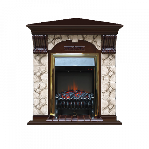Каминокомплект Glenrich Арочный Карелия угловой (дуб)+Fobos Brass