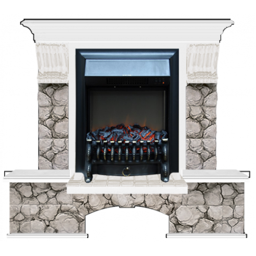 Каминокомплект Glenrich Бостон К Карелия (белый)+Fobos Black