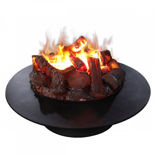 Создание «пламени» в них достигается за счет применения ультразвукового парогенератора. Микроскопические капли воды (туман), которые образуются, равномерно рассеиваются встроенным вентилятором. Получившееся облако особым образом подсвечивается разноцветными галогеновыми или светодиодными лампочками. Получившееся «пламя», в сочетании с очень достоверным «дымом» вырывается из искусственных поленьев. Иногда эта картина гармонично дополняется переливами и свечением искусственного угля. Выглядит такой очаг очень реалистично.