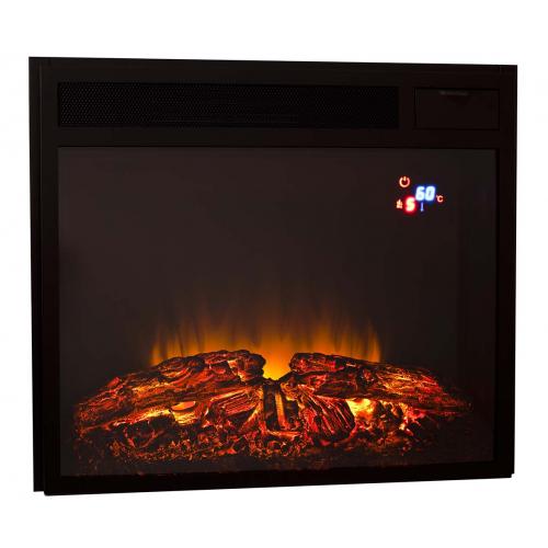 Внешним видом очаг напоминает классические топки, и выполнен он из качественного металла черного цвета. Переднюю его часть закрывает прямое стекло высокой прозрачности. В правом верхнем углу стекла с внутренней части вмонтирован небольшой LED-дисплей, на котором отображается вся информация по выбранному режиму. Топка очага оформлена муляжом сложенных дров и «прогоревших» углей, в который встроена независимая светодиодная подсветка, что позволяет создать эффект мерцания. Независимость подсветки означает, что она может гореть даже при выключенной основной подсветке и системы обогрева.