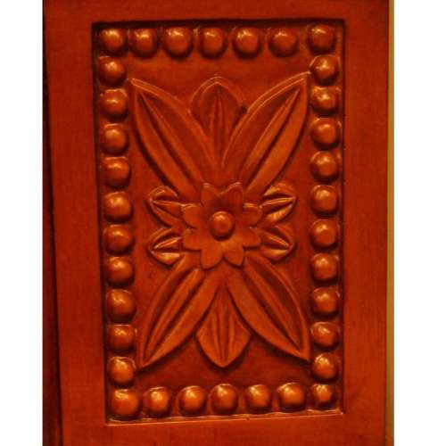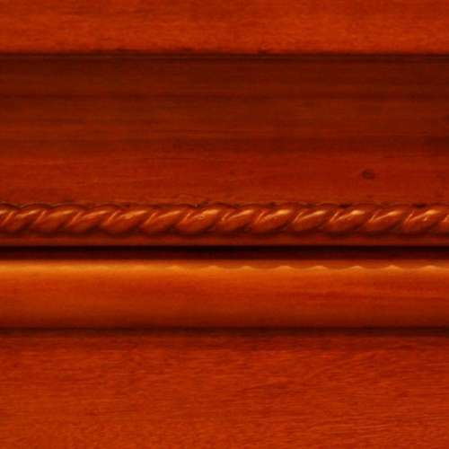 Фасад портала выдержан в стиле модерн и отличается солидной строгостью и сдержанностью. Прямоугольники тяг по сторонам от очага и на панели под каминной полкой, скромные резные элементы по бокам и нити резных жгутов под полкой, создают благородный облик камину.