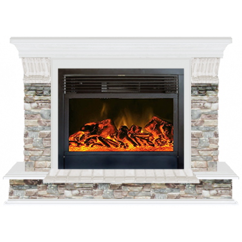Каминокомплект Glenrich Панорама Грот цветной 28 (белый)+Newflame