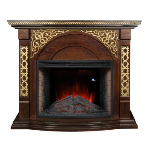Каминокомплект Alex Bauman Sherhan (грецкий орех с золотом)+Crystal 34 FX (Шерхан)