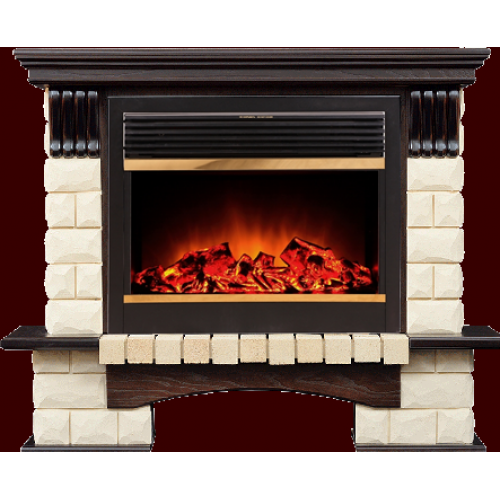 Каминокомплект Alex Bauman Tango Premium (грецкий орех)+Jupiter FX Brass