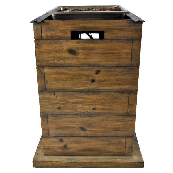 Газовый баллон устанавливается внутрь, розжиг, а также регулировка интенсивности подачи газа, осуществляется при помощи блока управления, расположенного на боковой части корпуса камина.