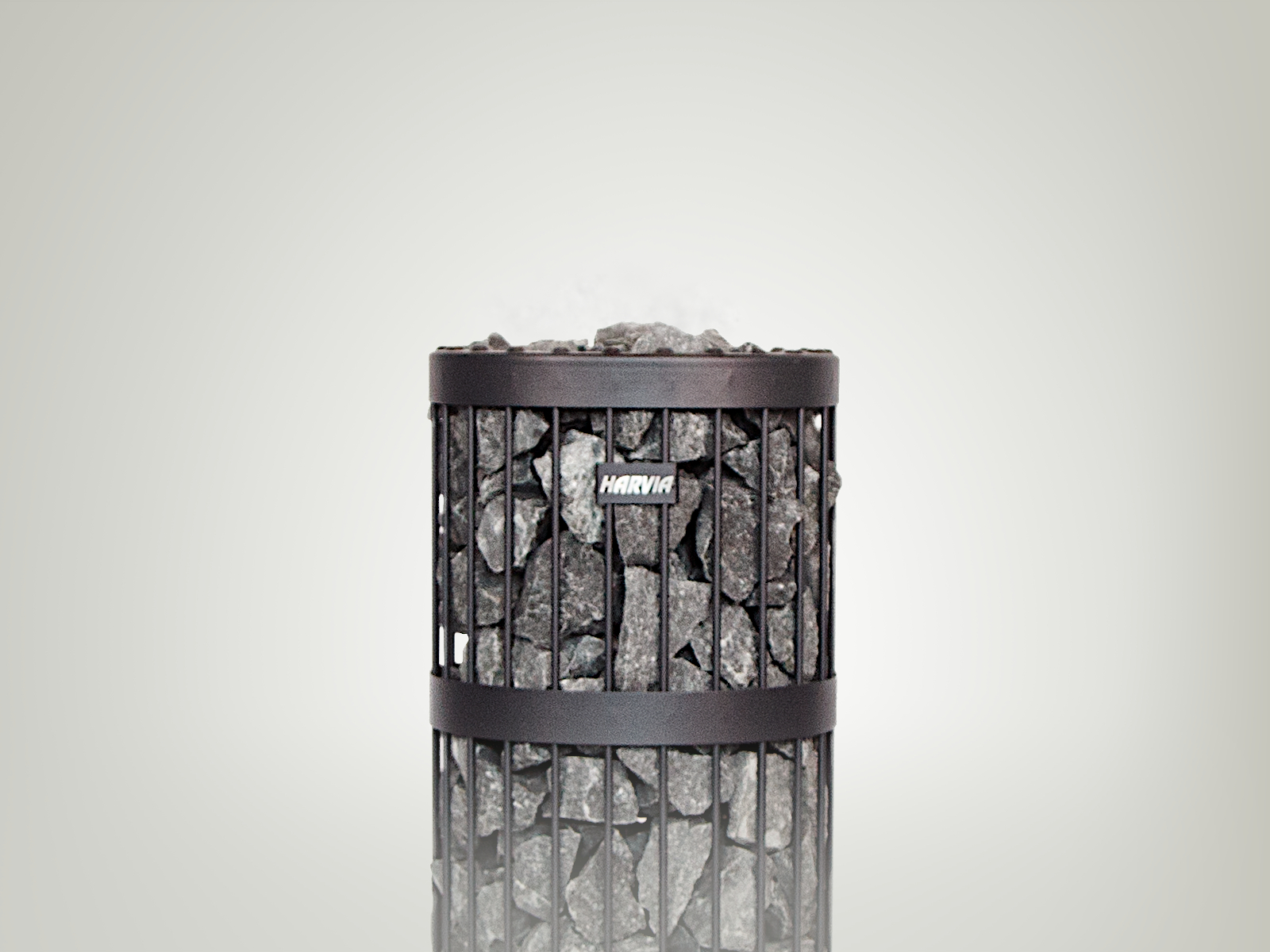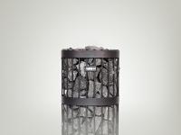 Форма корпуса печи напоминает цилиндр. Он вмещает в себя 100 кг камней. Корпус покрашен специальной краской в стильный темный цвет, который удачно сочетается с натуральным цветом камня и придает парилке оттенок «старины». Благодаря округлой форме, каменку Legend можно устанавливать в центр парилки. Конструкция печи позволяет также встраивать их в полок, экономя свободное пространство.