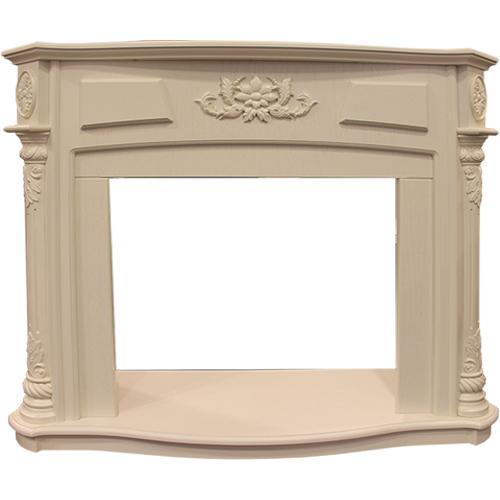 Классический каминный портал Sofie 26 имеет оригинальную форму, он немного расширен снизу в верх. Верхняя панель и основание портала многоугольной формы, с передним краем изогнутой формы. Портал украшен красивыми резными узорами по центру передней панели и на боковых полуколонах.