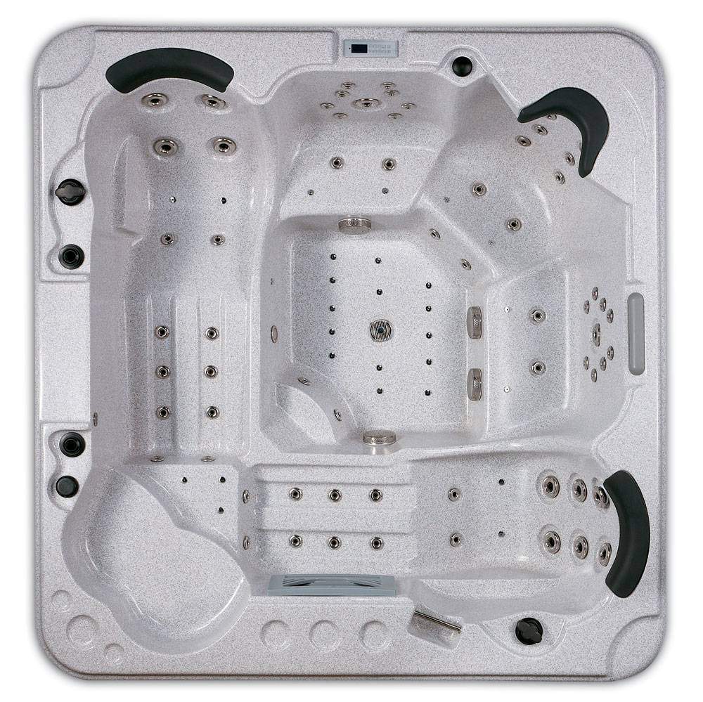 Бассейн включает три сиденья и два ложа. Обеспечивает четыре вида массажа. Отлично подойдет для семьи, но также может использоваться для лечебных учреждений.